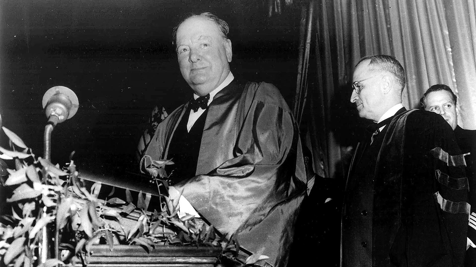 Para calmar la situación, tanto el gobierno estadounidense como el británico se distanciaron inicialmente del discurso de Churchill. Pero un año después, el presidente Truman comprometió a Estados Unidos a defender la democracia global, comprometiéndose a contener la expansión de la Unión Soviética y la expansión del comunismo. La Doctrina Truman , como se la conoció posteriormente, condujo al establecimiento de la OTAN y, posteriormente, a la participación estadounidense en los conflictos de Corea y Vietnam.