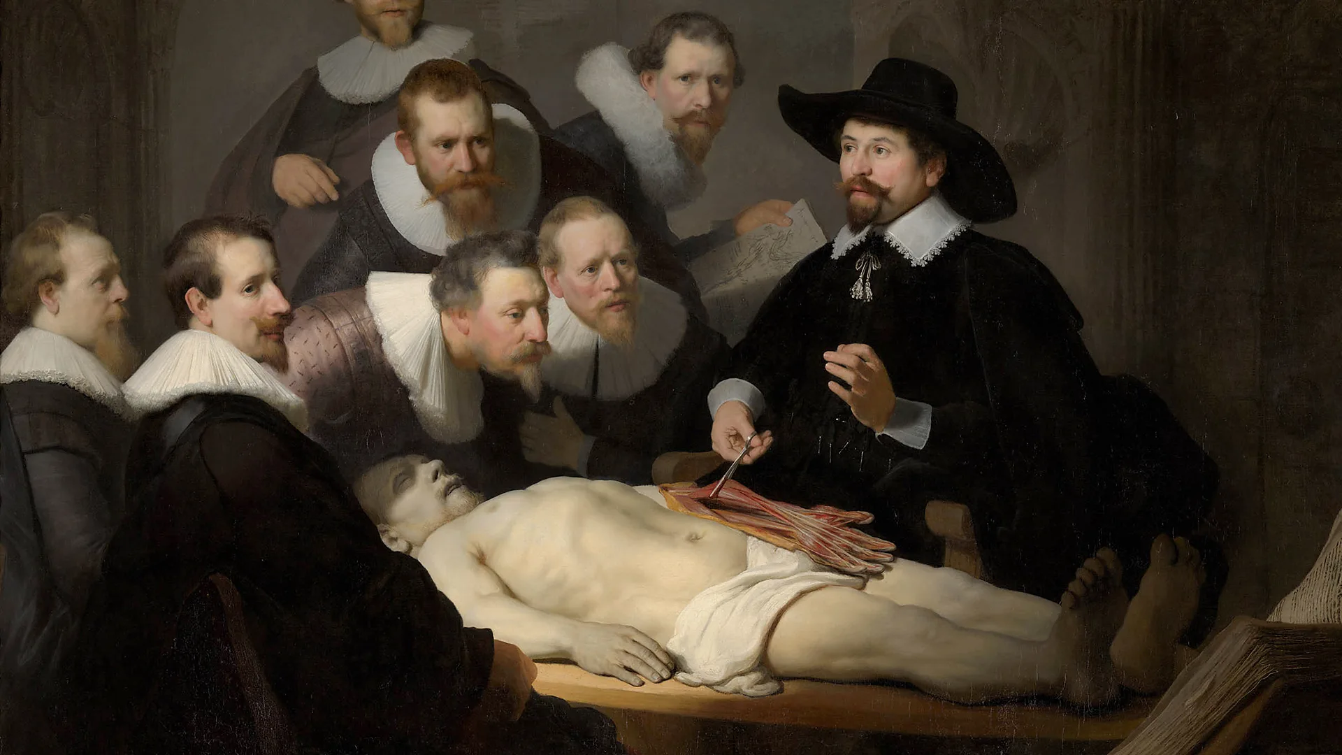 Su cuerpo es como mármol gris esculpido, con cada músculo perfectamente delineado. Pero la luminosa figura del cuadro de Rembrandt « La lección de anatomía del Dr. Nicolaes Tulp » (1632) no es un héroe de la antigüedad griega. Es un criminal ejecutado que está siendo diseccionado en un teatro. ¿Su delito? Robar un abrigo de invierno.